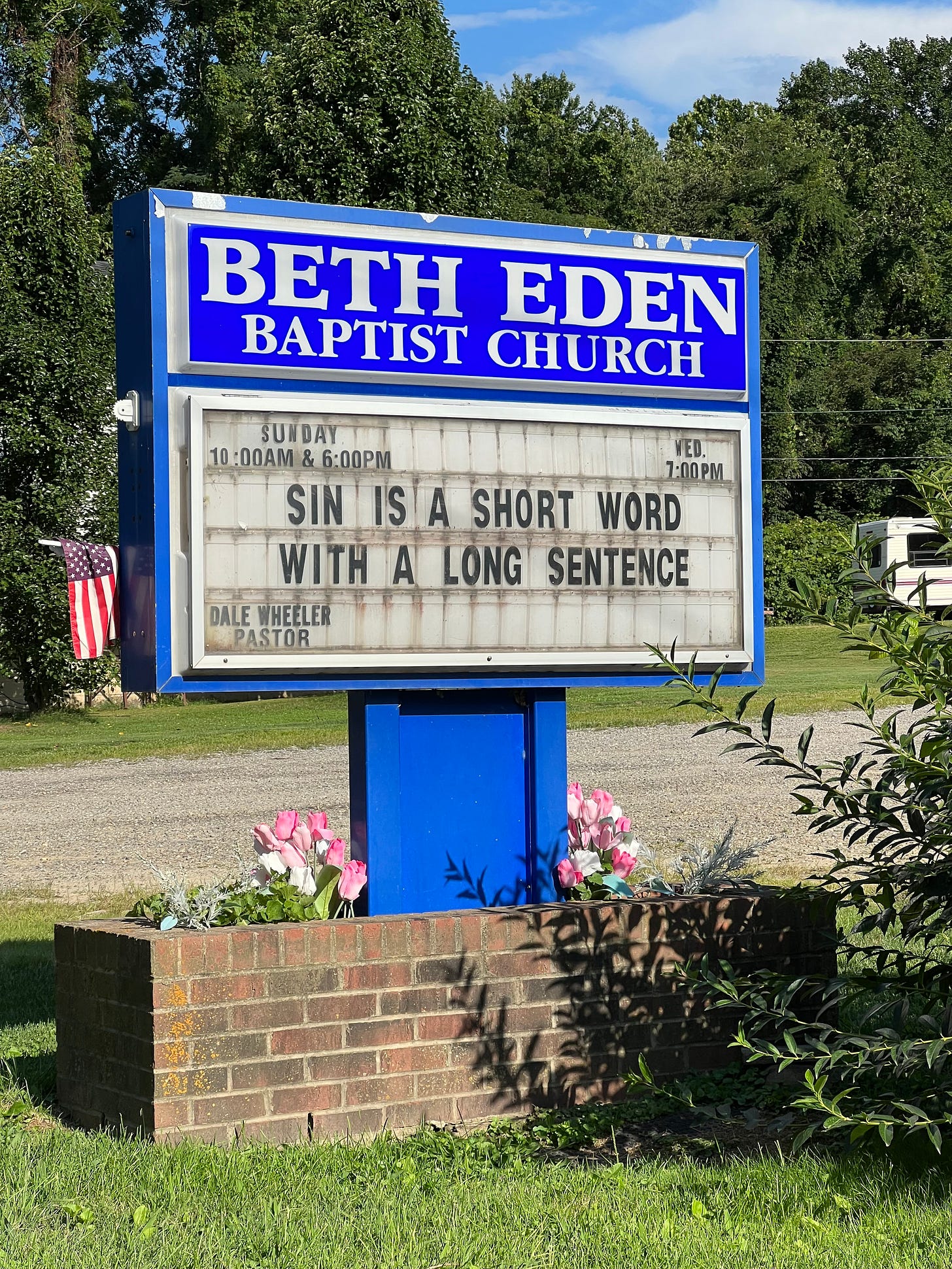 After driving by a church sign that said, “Sin is a short word with a long sentence,” I wondered,